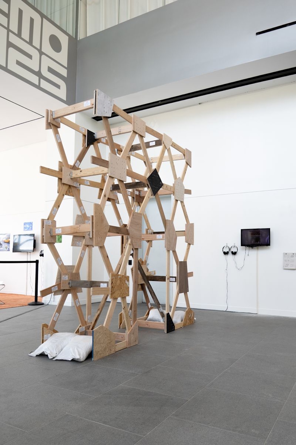 本作品は、廃材を用いて組み立てるという集団的行為を通して、素材の持続性を肯定するプロセスである。廃材や再生木材を用いた大型構造物のプロトタイプとして、修復方法を構造的側面と価値提案の両面から考察し、「私たちの周辺環境を構築するために使用された素材を大切にすることで、本来は廃棄物とみなされる物の価値をどのように転換できるだろうか?」という問いかけをしている。