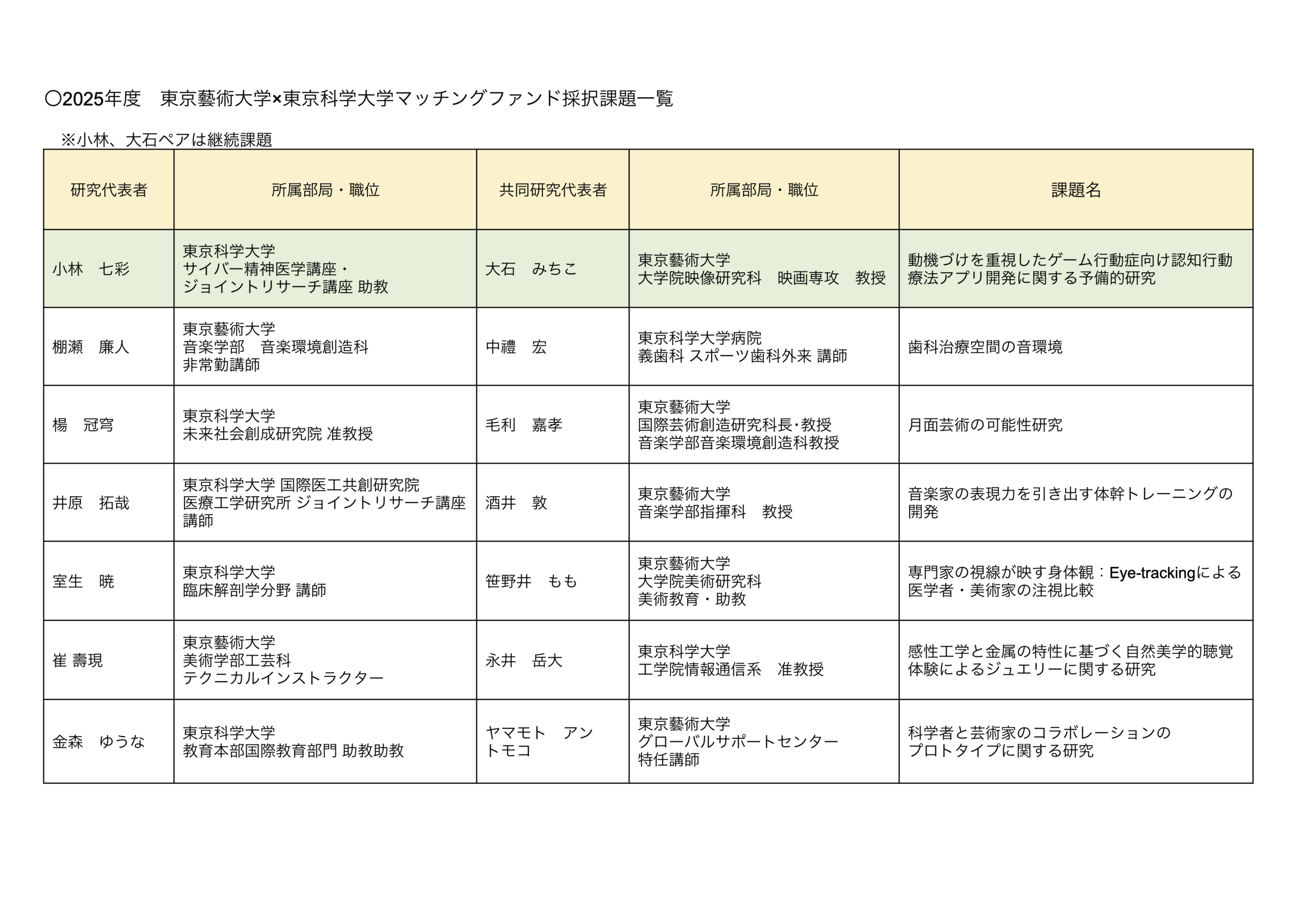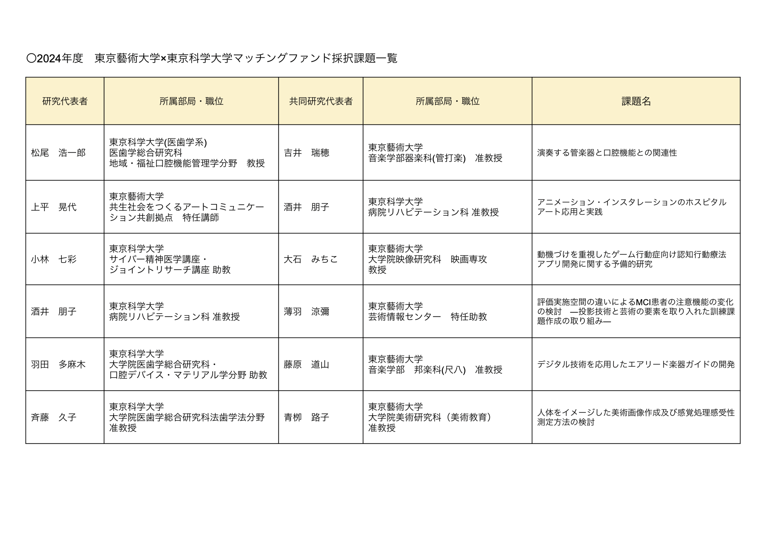 東京藝術大学×東京科学大学 課題共有型研究マッチングプロジェクト ~「医療」×「アート」×「サイエンス」の新たな挑戦を目指して~