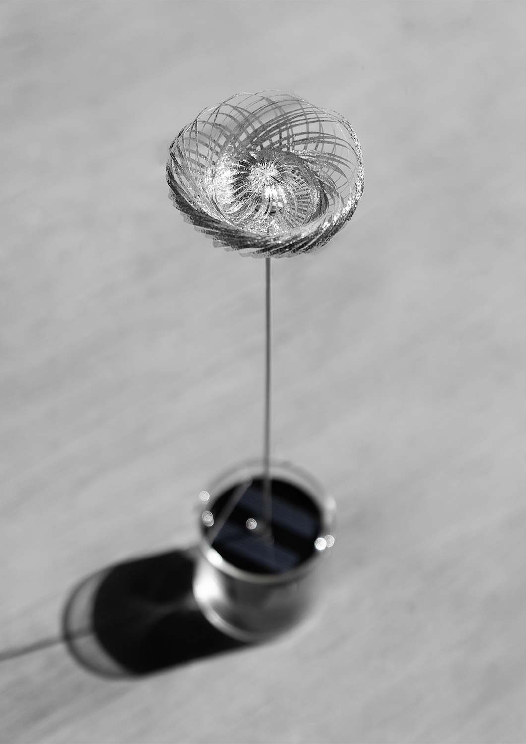 江戸菊とはその名の通り江戸時代に栄えた菊の種類であり、江戸時代の人々は花が咲いてから様々な形に変化する様を粋として楽しんだ。静かな花に「動き」という、世界に例を見ない品種改良の方向性を求めた江戸の遊び心に感化されて制作したアニマピアンタも動くオブジェクトである。単純な回転運動が花が咲くように見えるとき、そこには生命が宿っているようにも見える。このアニマピアンタシリーズの中でもapE シリーズは動力の伝達に既存の歯車を使用しているが、3D プリンター製樹脂金型による高精度のオリジナル歯車、例えば欠歯歯車や弦巻たが歯車などを制作することができたら、より種類に富んだ動きを生み出せるのではないかと考えている。
