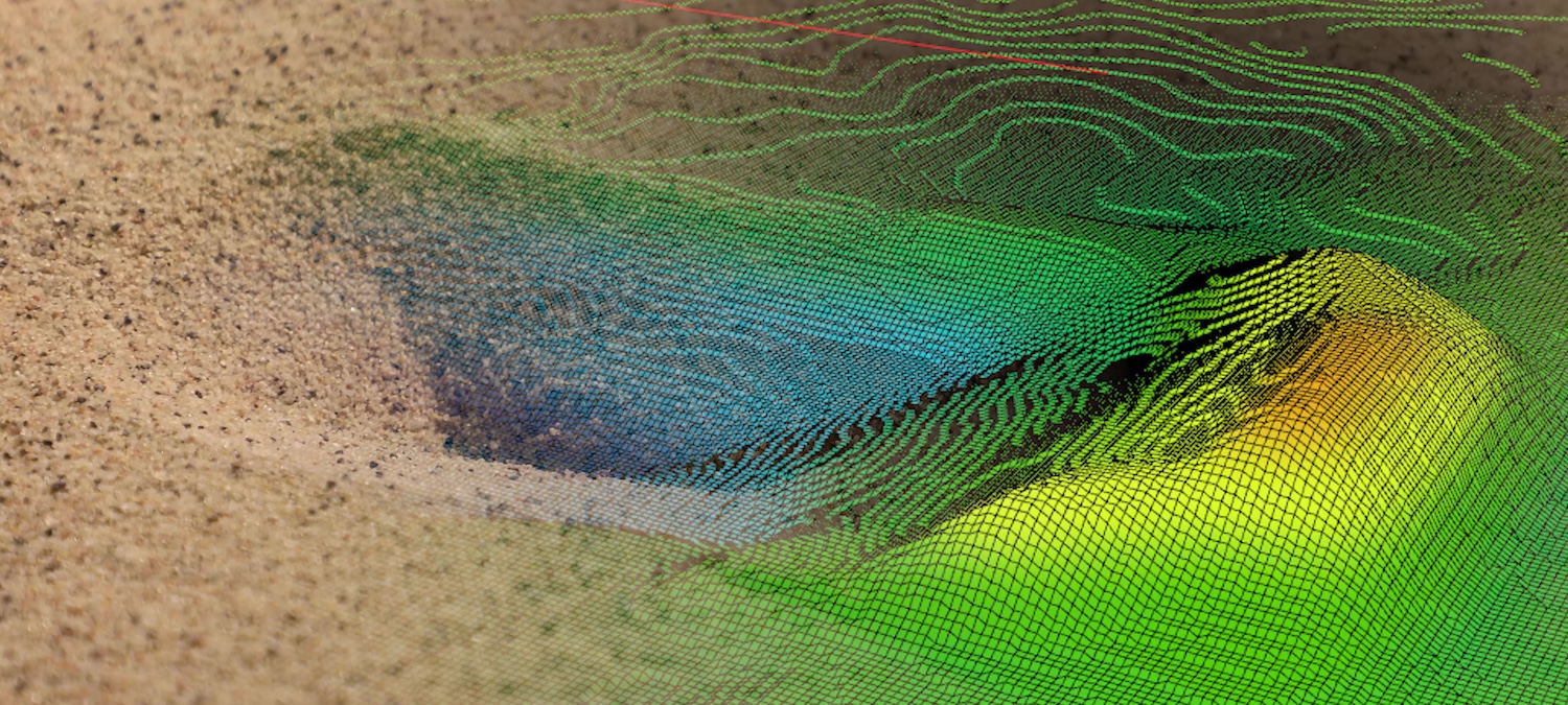 物理世界で収集したデータベースを基に学習した、砂の挙動予測を行うAIと、その施工を自動で行うセンサー搭載ロボットによる、砂の造形を行う。自立した手法によって、砂の表面は、常に目標形態に近づきながらも、絶対に一致しないその不可能性から、砂を媒体とした、終わりなき対話が繰り広げられる。最後には個人の手の痕跡を消滅させ、作者という存在が、背後に隠れ、ついには砂の中に埋まっていく。
